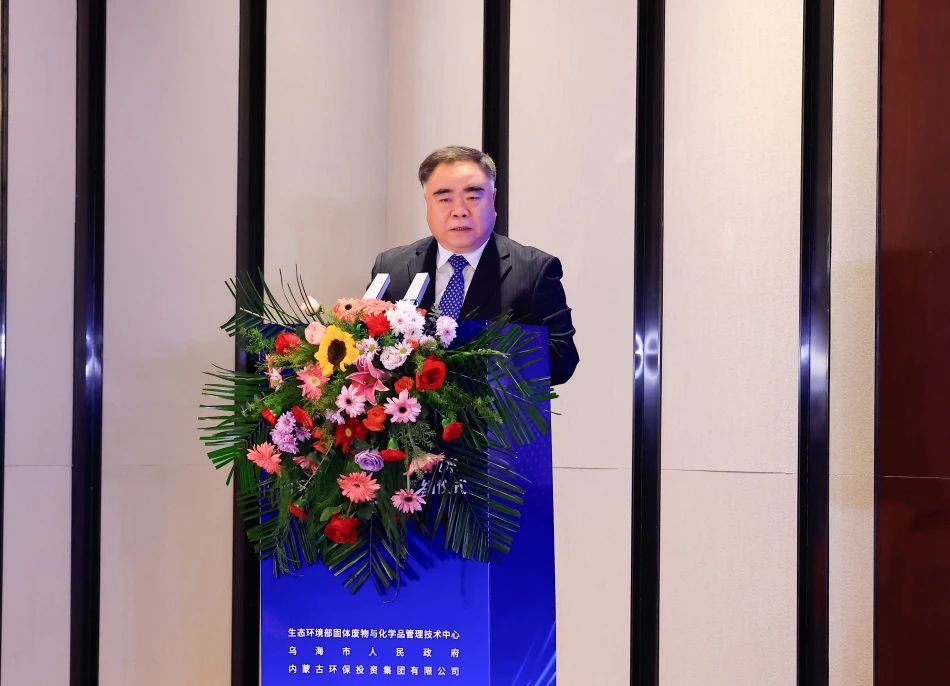 生态环境部固管中心副主任胡华龙致辞,他表示,生态环境部固管中心将认真落实协议内容,全方位与乌海市人民政府和安博在线开展合作,搭建资源共享和技术交流平台,推动科技成果的转化应用,为解决工业固体废物问题提供强有力的技术支持。
