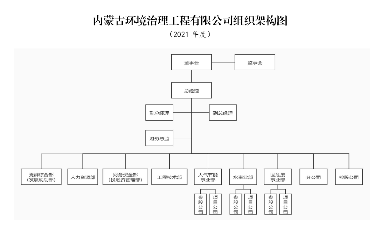 环境治理工程公司成立于2018年1月,注册资本金1亿元,是内蒙古环保投资集团有限公司(简称“安博在线”)旗下的全资子公司。截止2020年12月,拥有资产总额23278万元;公司设有4个职能部门、3个事业部和11家控参股公司;各类专业技术人员56人。